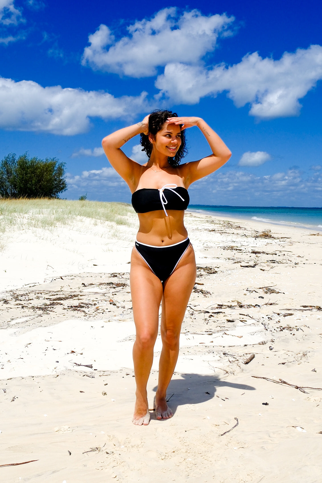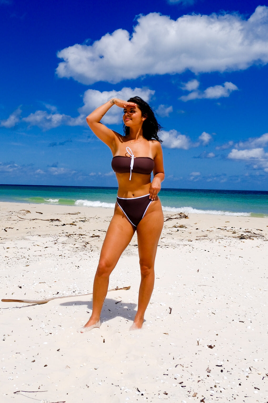 This stylish, reversible strapless bikini top combines functionality with versatility. Featuring a chic black side and a rich brown side, it allows you to switch up your look effortlessly. The adjustable tie string at the front not only adds a touch of elegance but also ensures a secure fit, preventing the top from slipping. Perfect for lounging in the sun or taking a dip, this piece offers comfort and confidence for any summer adventure. PSA - The little Saorsa heat press logos will eventually come off. We have acknowledged this and are not happy with it, this has been rectified with our next collection coming soon. Thankyou for understanding! WE LOVE YOU MORE THAN YOU KNOW XXXX
