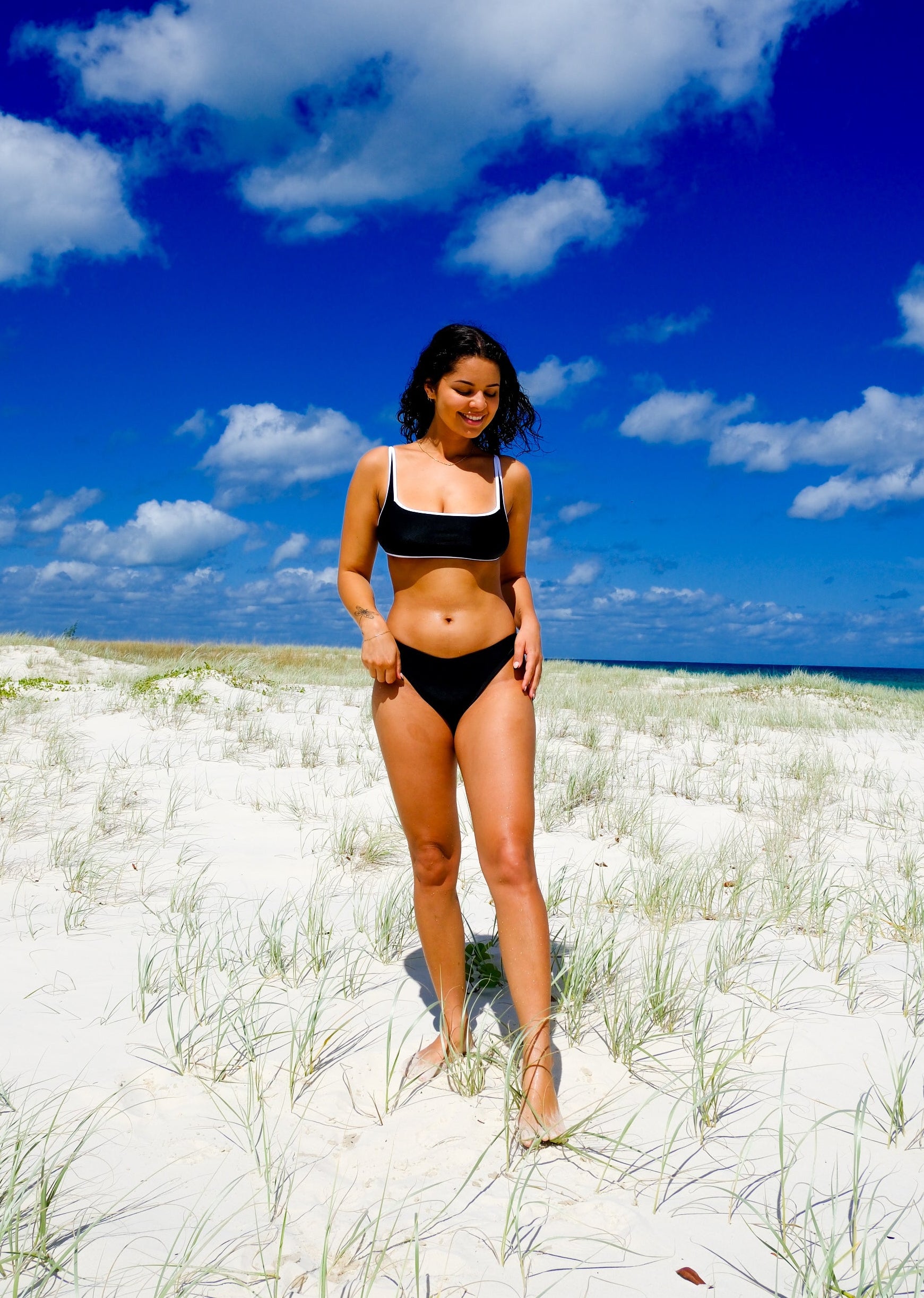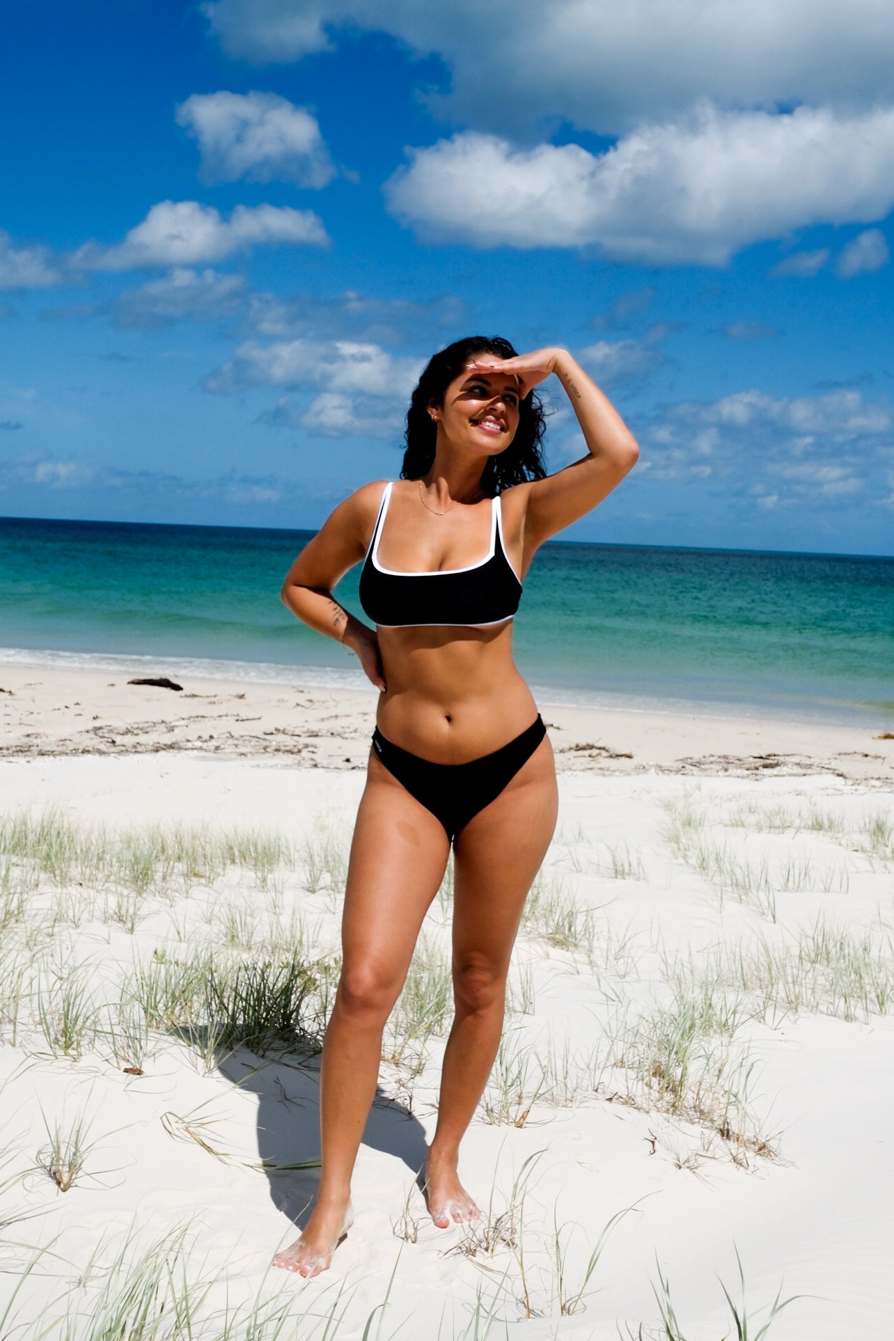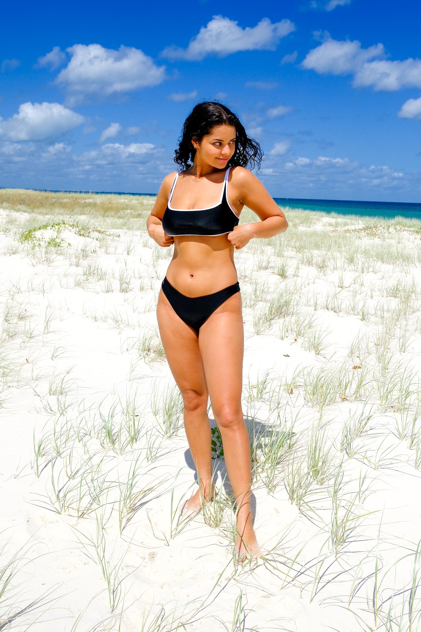 These black seamless bikini bottoms are the perfect combination of comfort and bold style. With a cheeky cut that enhances your natural shape, they offer minimal coverage for a flattering and confident look. The seamless construction ensures a smooth, no-lines fit, making them ideal for lounging or swimming. A must-have staple for any swimwear collection. PSA - The little Saorsa heat press logos will eventually come off. We have acknowledged this and are not happy with it, this has been rectified with our next collection coming soon. Thankyou for understanding! WE LOVE YOU MORE THAN YOU KNOW XXXX
