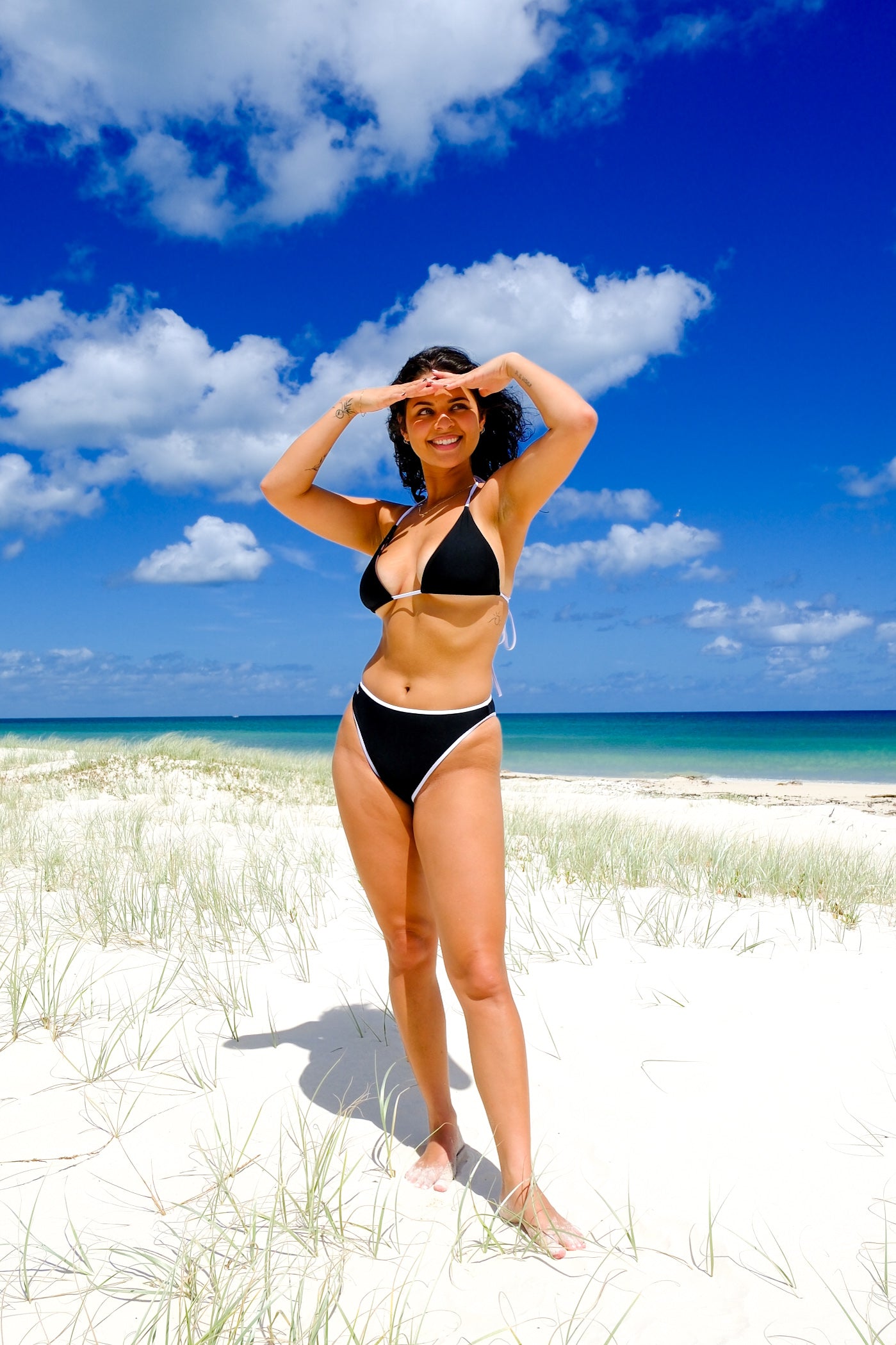 A girls best friend! This classic triangle bikini top is a versatile swimwear essential. Featuring a reversible design, it offers two looks in one, perfect for switching up your style. The seamless construction ensures a smooth, comfortable fit, while the adjustable tie neck and back provide a customizable fit for all-day wear. Simple, timeless, and effortlessly chic. PSA - The little Saorsa heat press logos will eventually come off. We have acknowledged this and are not happy with it, this has been rectified with our next collection coming soon. Thankyou for understanding! WE LOVE YOU MORE THAN YOU KNOW XXXX